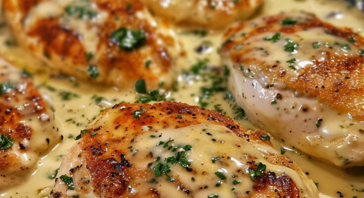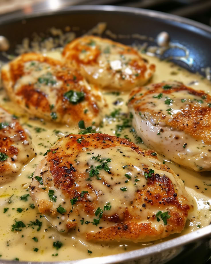 Combine Chicken and Sauce: Return the cooked chicken breasts to the skillet, spooning the creamy sauce over them. Simmer for 2-3 minutes to combine the flavors.