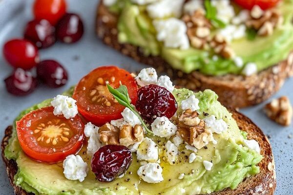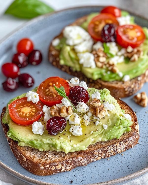 An exciting twist on classic avocado toast, featuring creamy feta, sweet cranberries, and crunchy walnuts for a flavor-packed breakfast or snack!