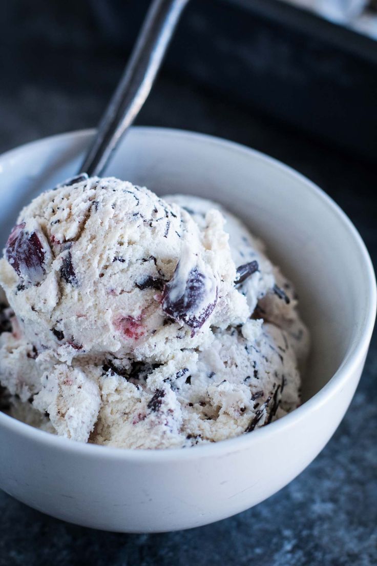 Scoop out your creamy, cherry-filled ice cream and enjoy! 🍒🍫🍦