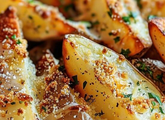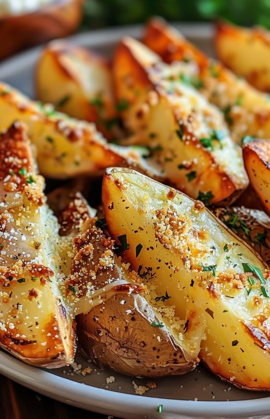 Crispy Garlic Parmesan Baked Potato Wedges