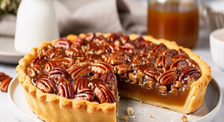 Delicious Condensed Milk Pecan Pie with a Sweet Glaze! 🥧✨