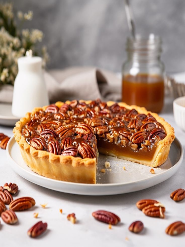 Indulge in the rich, nutty flavors of this condensed milk pecan pie. Perfect for any occasion, this dessert combines a creamy filling with crunchy pecans, all topped with a delightful glaze that adds an extra layer of sweetness.