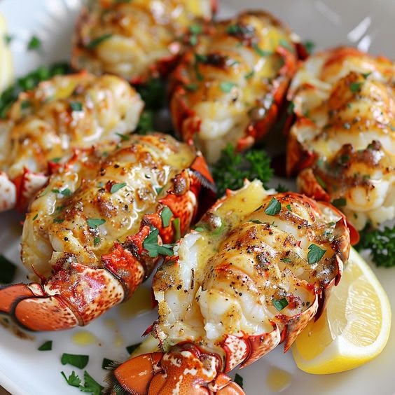“Juicy, tender lobster tails broiled to perfection and drenched in a rich, garlicky butter sauceâsimple elegance on a plate.”