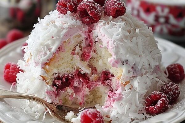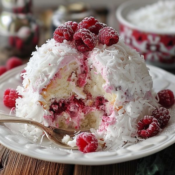 Raspberry Swirl Coconut Snowball Cake 🍰🍇❄️👇