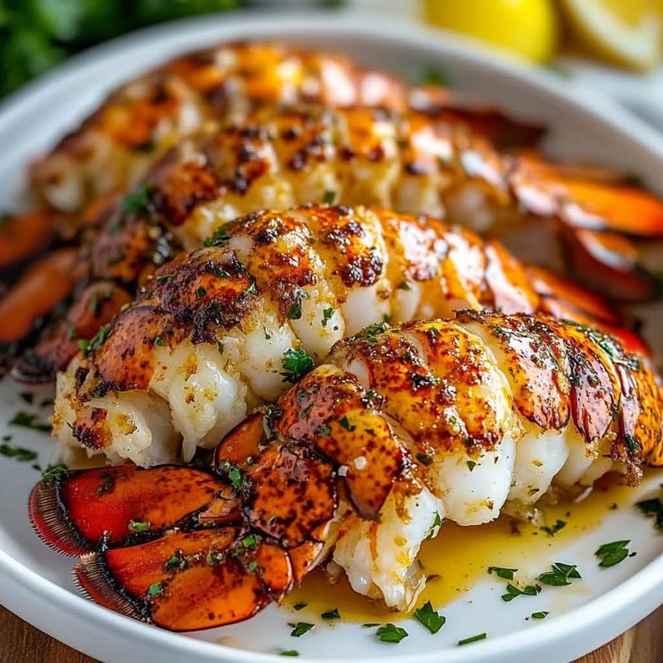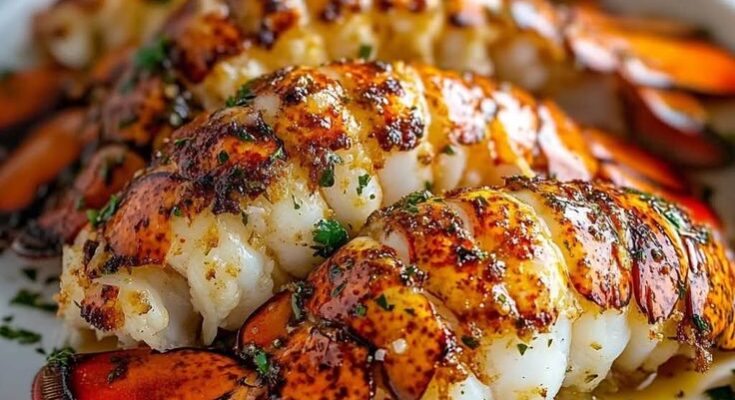 Perfectly grilled lobster tails drizzled with rich garlic butterâpure indulgence!